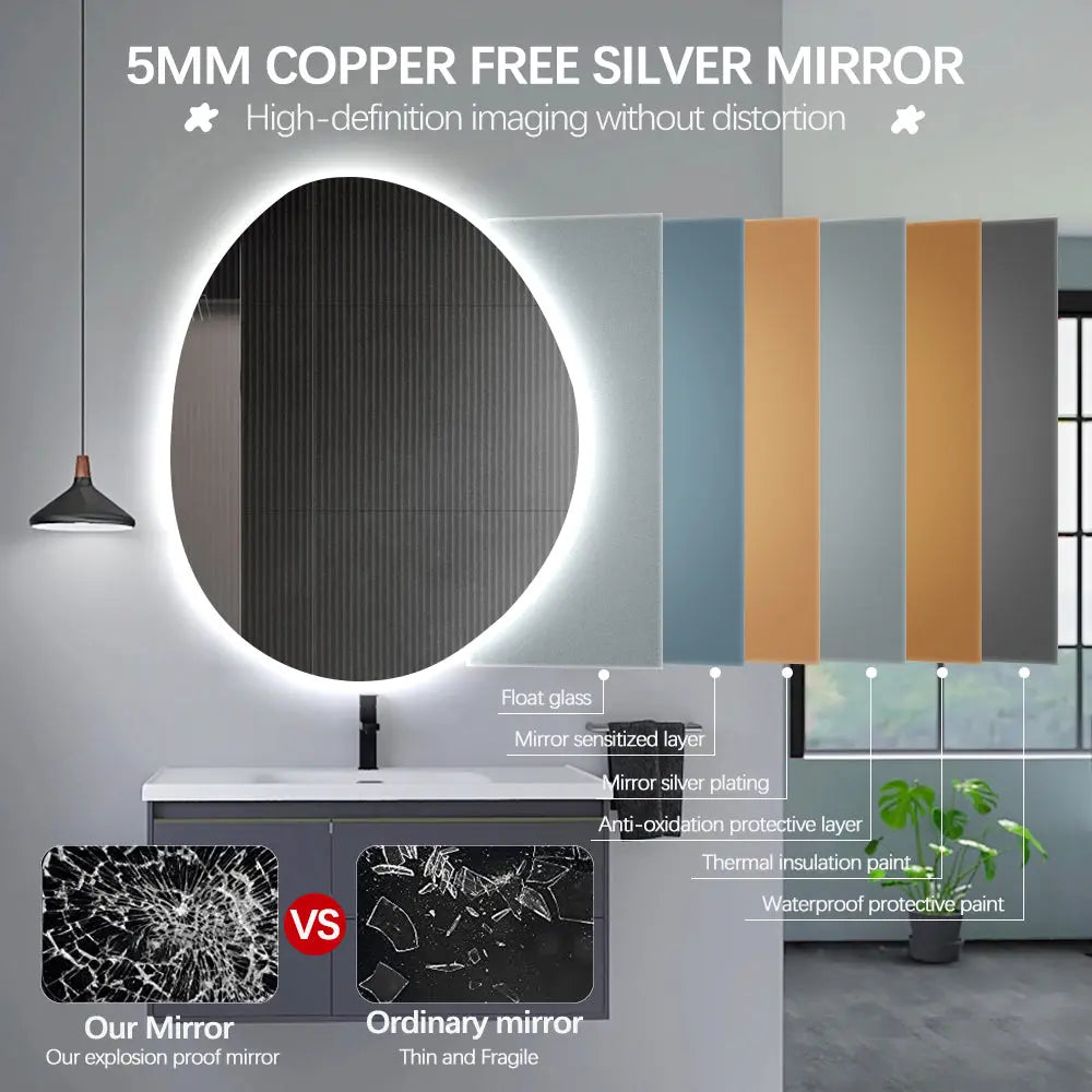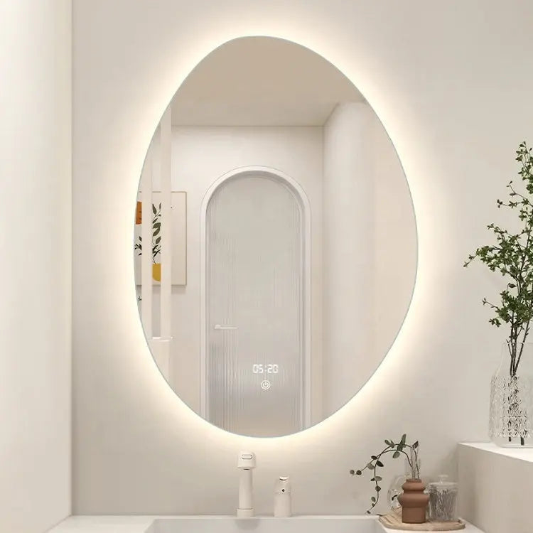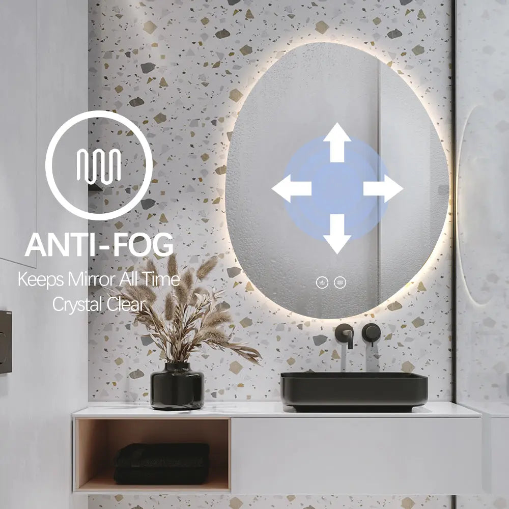 The Odessa LED Mirror frameless, semi-round shape blends seamlessly with any aesthetic while elevating the ambiance of a room. It's reflective broad surface captures and enhances light creating an ethereal glow transforming any space into something more luminous and luxurious.